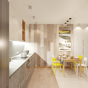 Интерьер кухни в современном стиле, проект «Дизайн объединенного пространства кухни-гостиной для молодой пары, 2 вариант» №2