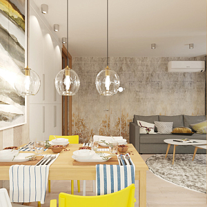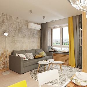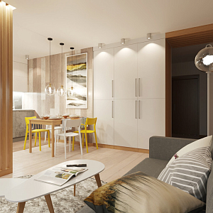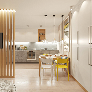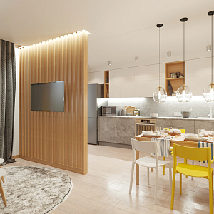 Дизайн объединенного пространства кухни-гостиной для молодой пары, 2 вариант