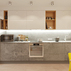 Интерьер кухни в современном стиле, проект «Дизайн объединенного пространства кухни-гостиной для молодой пары, 2 вариант» №4
