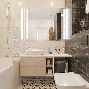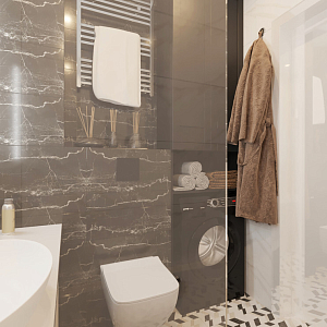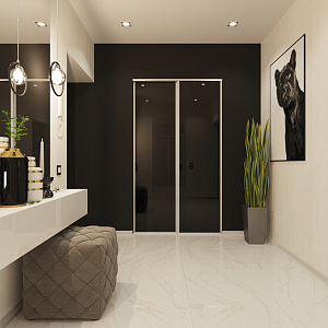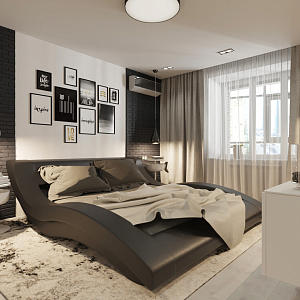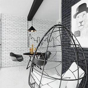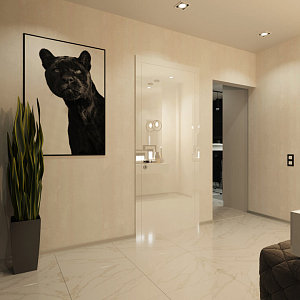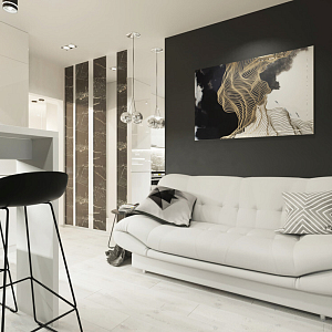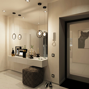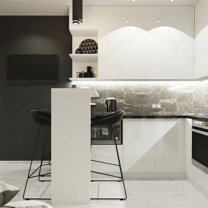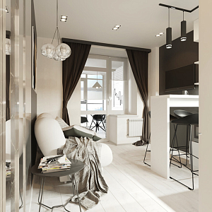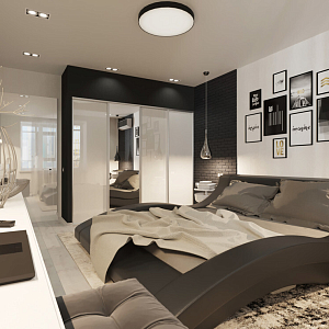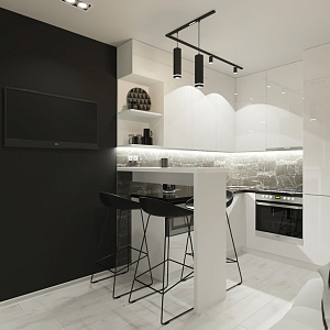 Интерьер с подсветкой настенной и подсветкой светодиодной в современном стиле, проект «Квартира для холостяка с видом на реку Обь» №2