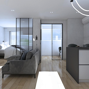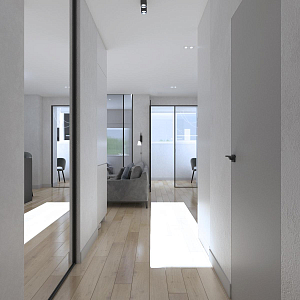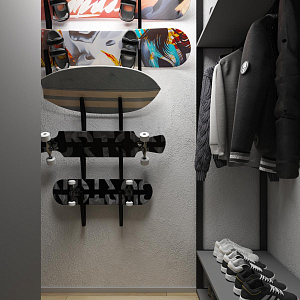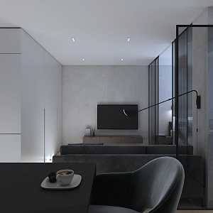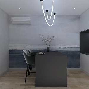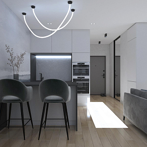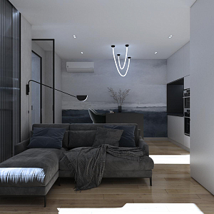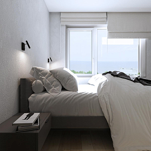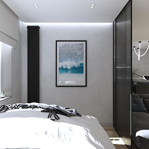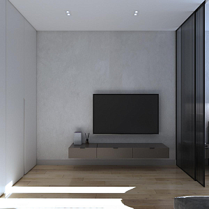 Интерьер спальни cветовыми линиями, рейками с подсветкой, подсветкой настенной, подсветкой светодиодной и с подсветкой, проект «Южный ветер Краснодар 45 м2, Квартира» №19