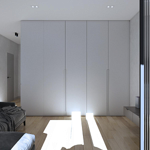 Интерьер гостиной cветовыми линиями, стеной с телевизором, керамогранитом на стену с телевизором, подсветкой настенной и подсветкой светодиодной, проект «Южный ветер Краснодар 45 м2, Квартира» №22