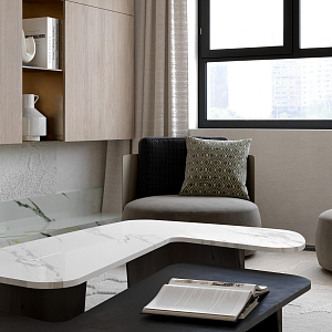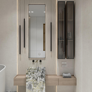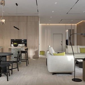 Интерьер кухни с подсветкой настенной, подсветкой светодиодной, рейками с подсветкой, с подсветкой, светильниками над кроватью и световыми линиями, проект «Secret Place Ломоносовский пр-т Москва 139 кв.м., Квартира» №17