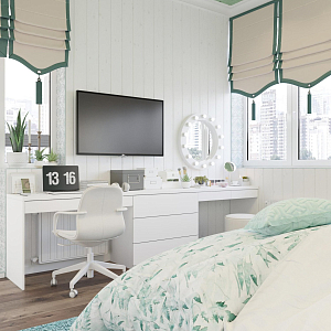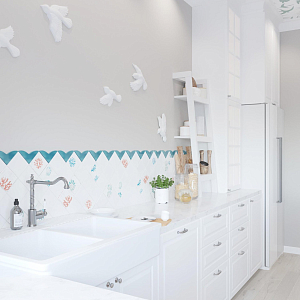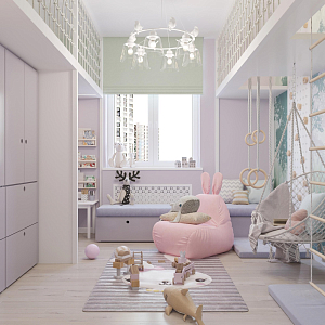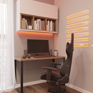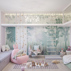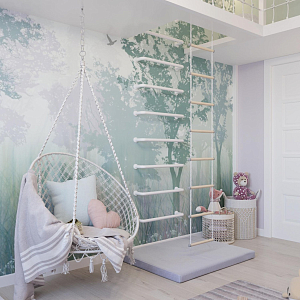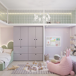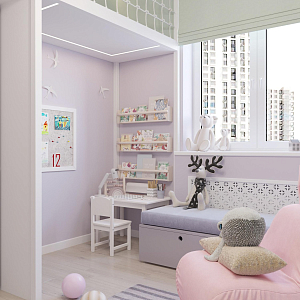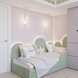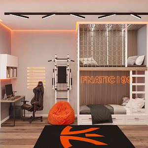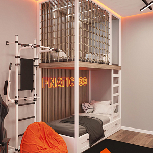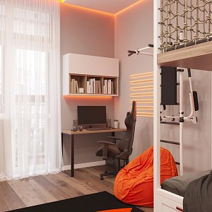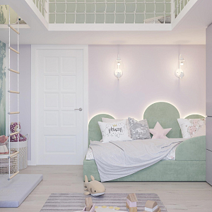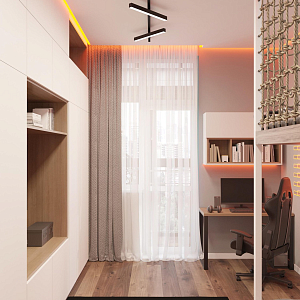 Интерьер детской cветовыми линиями, рейками с подсветкой, подсветкой настенной и подсветкой светодиодной, проект «Квартира в ЖК Академик Екатеринбург 100 кв.м., Квартира» №28