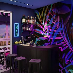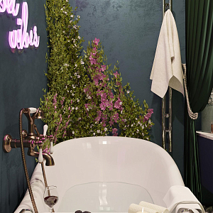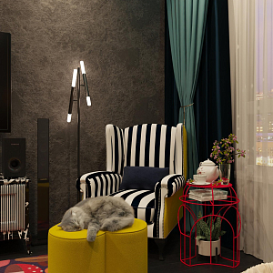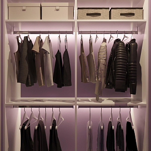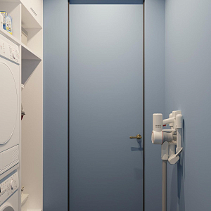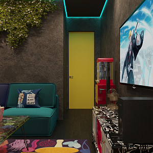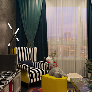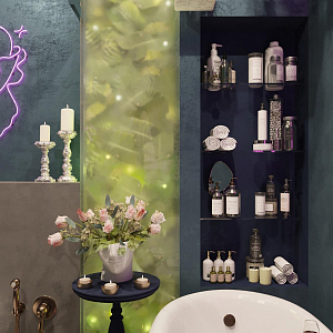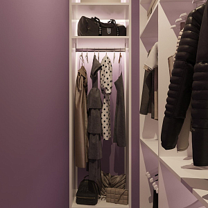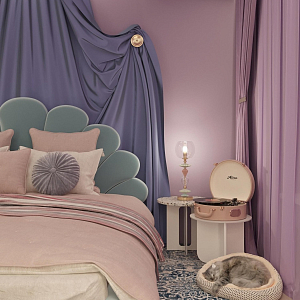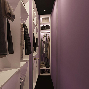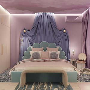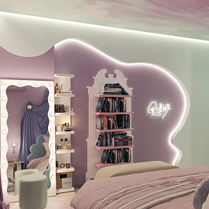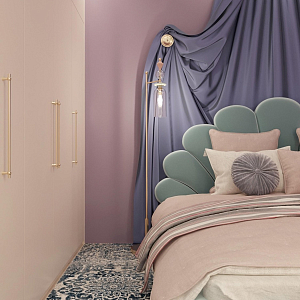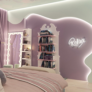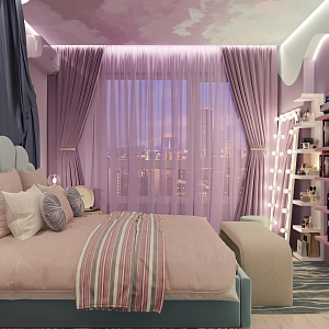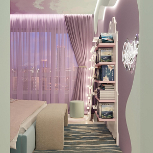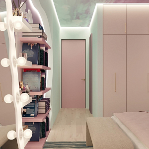 Интерьер спальни с нишей с подсветкой, подсветкой настенной, подсветкой светодиодной, рейками с подсветкой, с подсветкой, светильниками над кроватью и световыми линиями, проект «Квартира в ЖК Clever Park Екатеринбург 42 кв.м., Квартира» №13