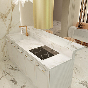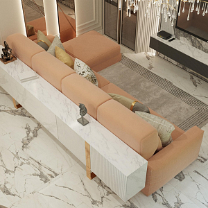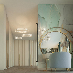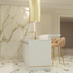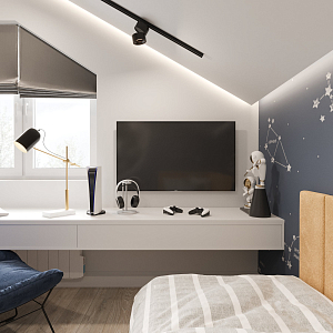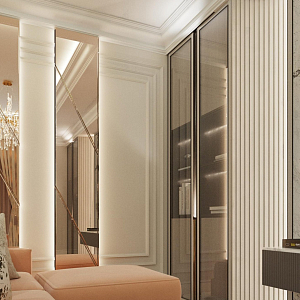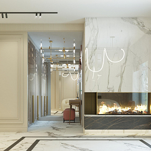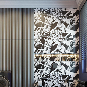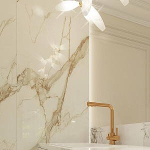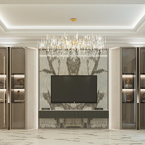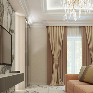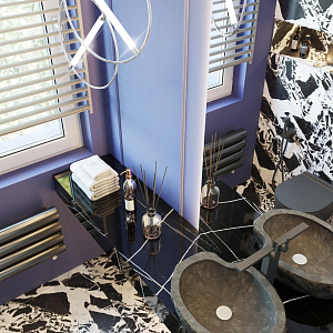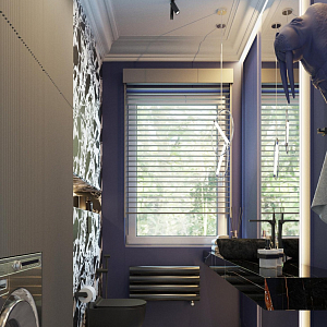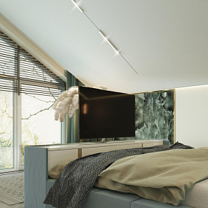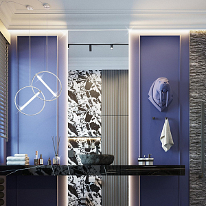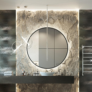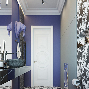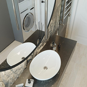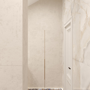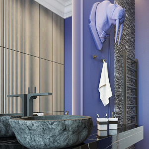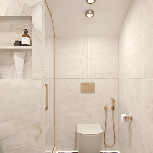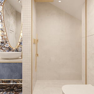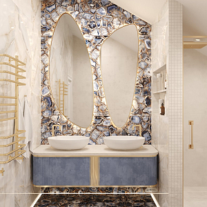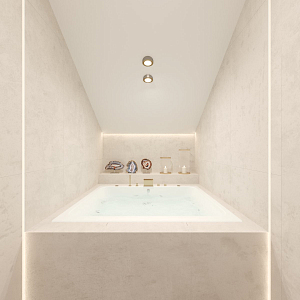Интерьер ванной с нишей из плитки, нишей с подсветкой, керамогранитом на стену с телевизором, подсветкой настенной и подсветкой светодиодной, проект «Проект коттеджа в д.Бурцево, Нижегородская обл.155,56 кв.м., Коттедж» №49