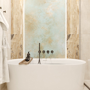 Интерьер ванной с подсветкой настенной и подсветкой светодиодной, проект «Проект ванной комнаты, Нижний Новгород 5,26 кв.м, Квартира» №4