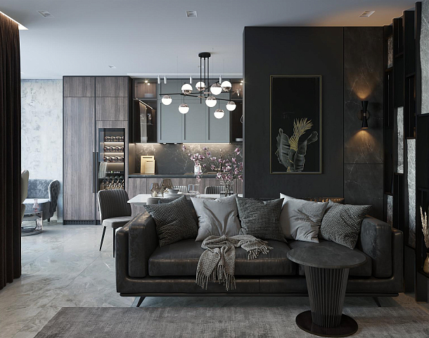 Неоклассика в двух вариантах. Кухня-гостиная, Комната