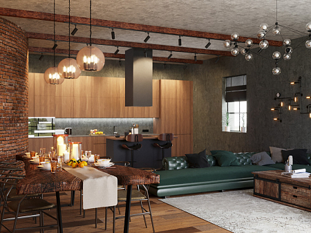 Кухня-гостиная в стиле лофт