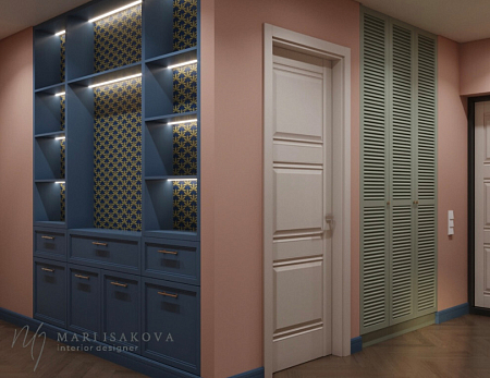 Визуализация дизайн-проекта: квартира 62 квадратных метра. Прихожая
