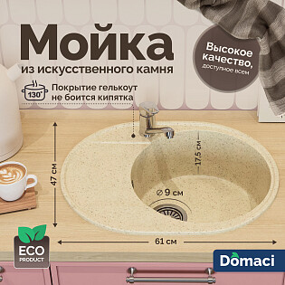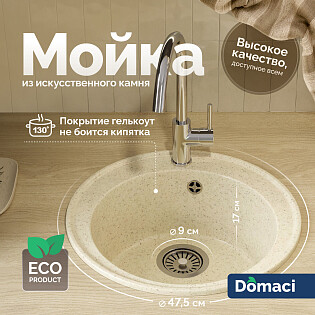 Domaci разрушает стереотипы о том, какой должна быть кухня. Его инновационные и функциональные решения оптимизируют кухонное пространство. Например, двойная чаша для кухонной мойки посуды дает возможность разделить зоны мытья посуды и размораживания продуктов, а смесители с функцией подачи питьевой воды исключает установку дополнительного крана для фильтра в зоне раковины.