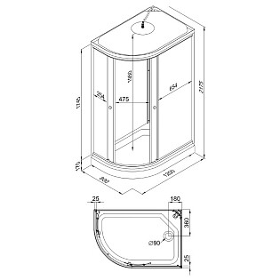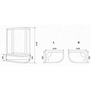 Душевая кабина ассиметричная правая с высоким поддоном 80х120 см белая, черная Parly EC1221R