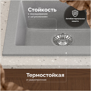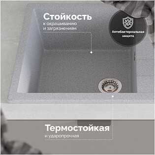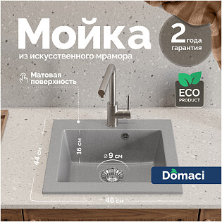 Мойка кухонная из искусственного мрамора светло-серая Domaci "Парма" 61-47-210