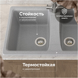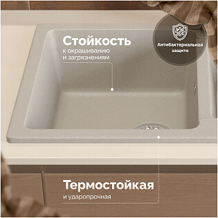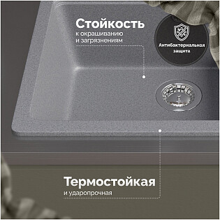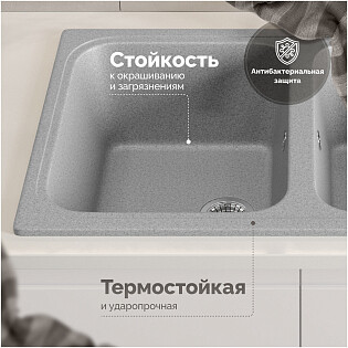 Мойка кухонная из искусственного мрамора серая Domaci "Парма" 76-47-251
