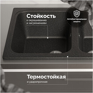 Мойка кухонная из искусственного мрамора прямоугольная 51х76 см черная Domaci "Савона" РА 760