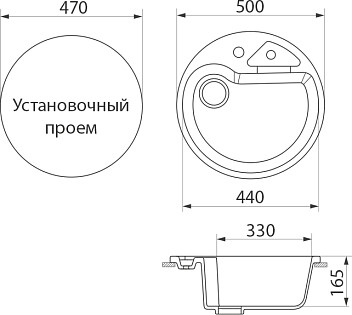 Мойка кухонная круглая черная Domaci "Бьелла" DMC-08K-308 черная со смесителем MEGA Mega MG-BMK016