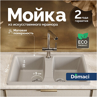 Мойка кухонная из искусственного мрамора прямоугольная 49х78 см бежевая Domaci "Парма" 78-49-800
