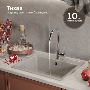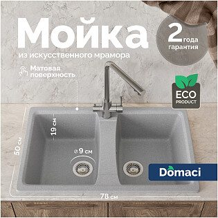 Мойка кухонная серая Domaci "Болонья" М-03-005 со смесителем "Равенна" D45-002cr