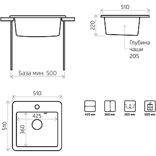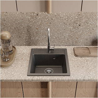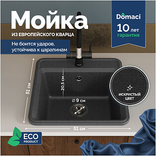 Мойка кухонная из искусственного мрамора квадратная 51 см черная Domaci "Римини" DG К-405
