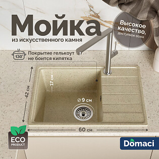 Мойка кухонная бежевая Domaci "Болонья" М-26-003