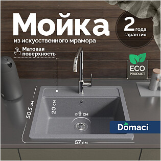 Мойка кухонная серая Domaci "Болонья" М-09-005