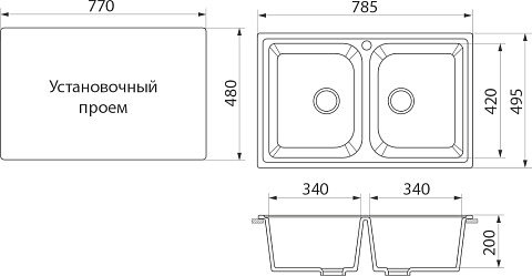 Мойка кухонная антрацит Domaci "Болонья" М-150-007 со смесителем "Ливорно" 33080-229-1GB-IG11
