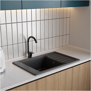 Мойка кухонная черная Domaci "Бьелла" DMC-06 со смесителем Mega City MG- ZRV104