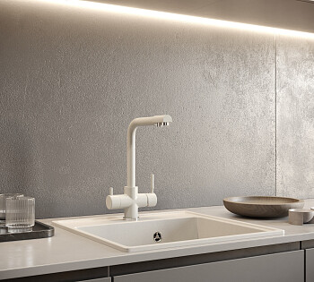 Мойка кухонная белая Domaci "Болонья" М-10-001 со смесителем "Равенна" D45-002cr
