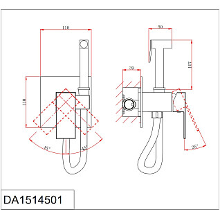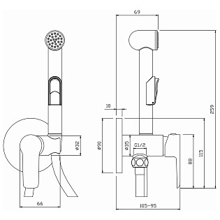 Смеситель встраиваемый с гигиеническим душем хром Rossinka W25-51