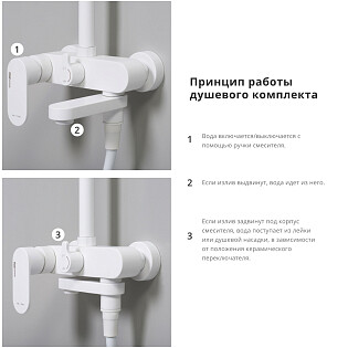 Душевой комплект со смесителем для ванны с душем белый Stworki "Эстерсунд" ES-09w ES-03w