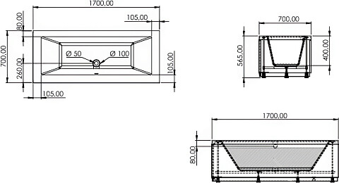 Ванна акриловая прямоугольная 70х170 см белая Artemis Sentinus
