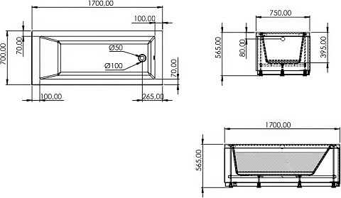 Ванна акриловая прямоугольная 70х170 см белая Creto Solly 18-17070