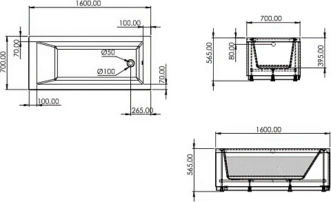 Ванна акриловая прямоугольная 70х160 см белая Artemis Ceres 1011260020102810