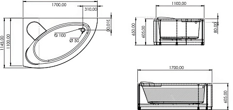 Ванна акриловая угловая левая 110х170 см белая Artemis Antiphos L 10320702501028