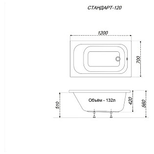 Ванна акриловая 120х70 см белая Triton "Стандарт Экстра" Н0000099325