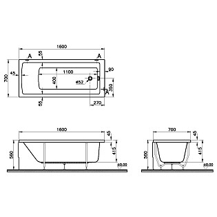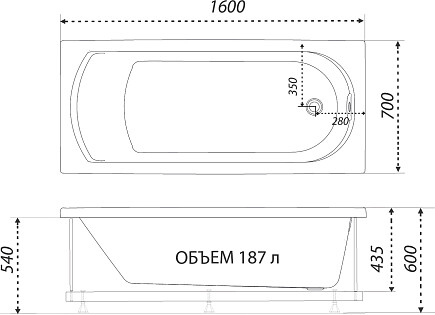Ванна акриловая 160х70 см белая 1ACReal "Европа" Щ0000043363