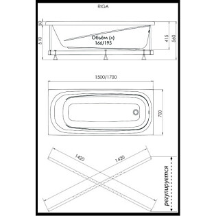 Ванна акриловая 150х70 см белая 1ACReal Riga Щ0000040945