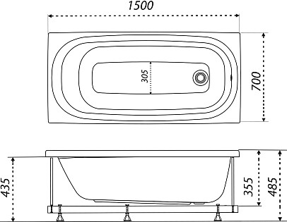 Ванна акриловая прямоугольная 150х70 см белая Triton "Тира" Щ0000016666