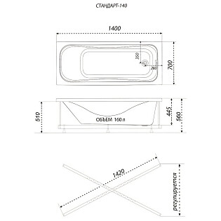 Ванна акриловая 140х70 см белая Triton "Стандарт Экстра" Н0000099327