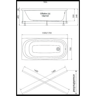 Ванна акриловая прямоугольная 170х70 см белая Triton "Тира" Щ0000016669