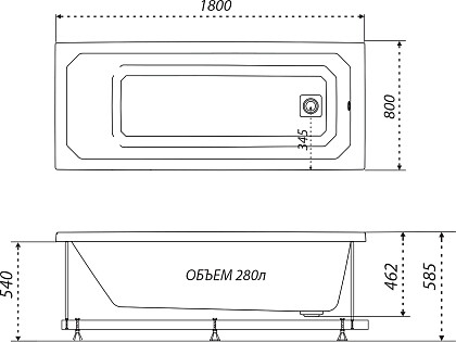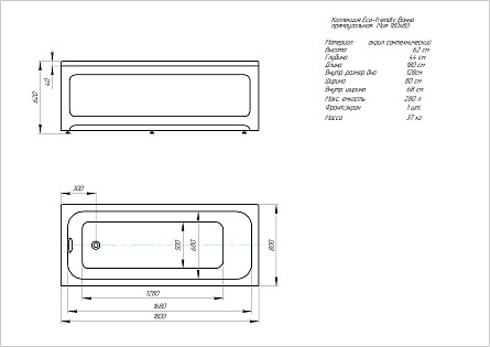 Ванна акриловая 80х180 см белая Diwo "Элиста" Щ0000055168