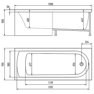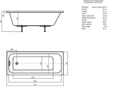 Ванна акриловая 170х70 см обрезанная белая 1ACReal "Дюна" Щ0000046114