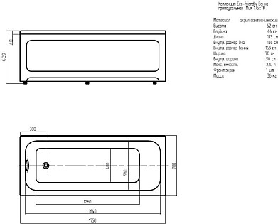 Ванна акриловая 170х75 см белая Triton "Стандарт Экстра" Н0000099507