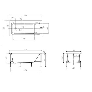 Ванна акриловая прямоугольная 150x75 см белая Cersanit Virgo 63352