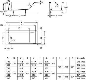 Ванна акриловая 170х70 см белая Roca Line ZRU9302924