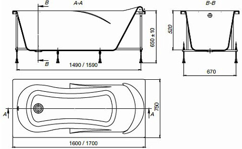 Ванна акриловая 170х70 см белая Roca Leon 248658000