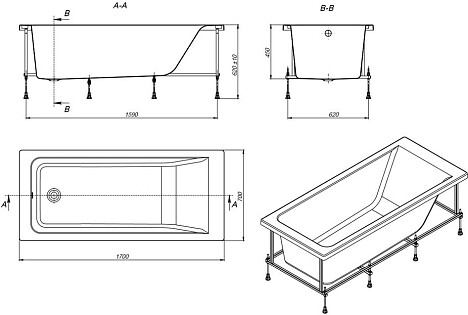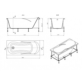 Ванна акриловая прямоугольная 150х70 см с каркасом белая Aquatek "Либра" New LIB150N-0000008