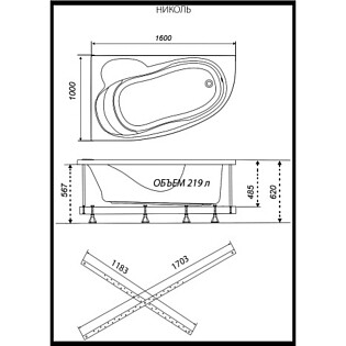 Ванна акриловая 160х100 см обрезанная правая белая Triton "Николь" Щ0000048680