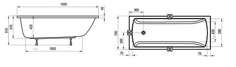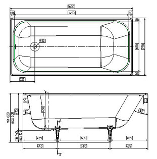 Ванна чугунная 150х70 см белая Wotte Forma 1500x700