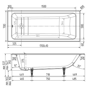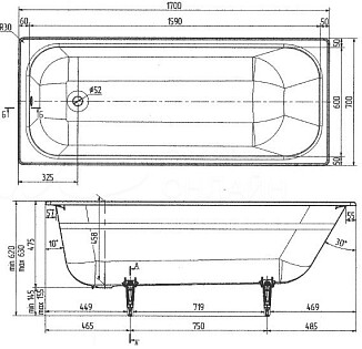 Ванна чугунная 170х70 см белая Wotte Line Line 1700x700